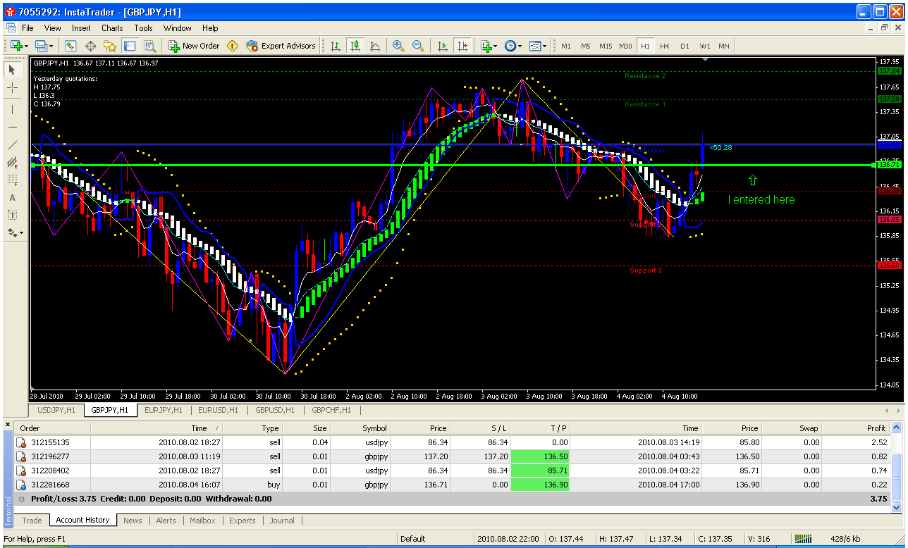 I entered a trade on GBP/JPY at a price of 136.71 :D