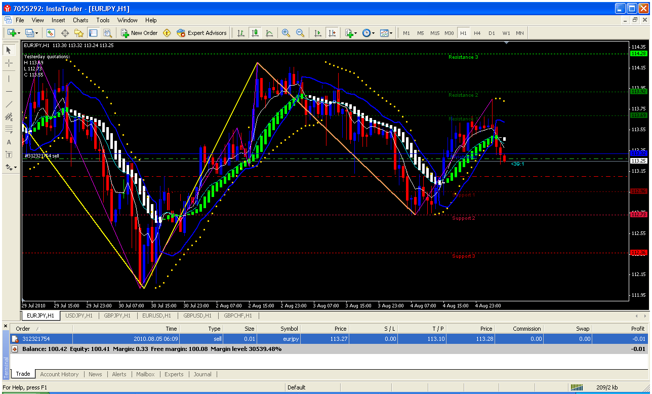 I am in school now and i have no lesson so i open up my MT4 and i just want to look at those charts and suddenly i saw a short signal on EUR/JPY. Immediately i triggered the sell order button :D