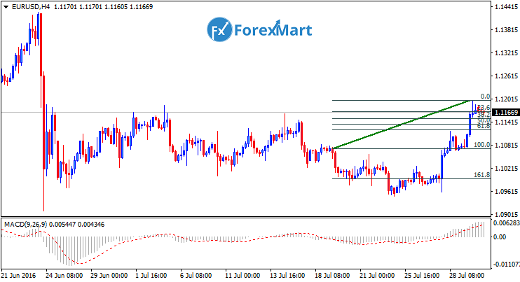 The EUR/USD pair transcend an upward trend on Friday. The financial instrument directed its highest possible rating approximately in the 1.1200 level. The resistance is set at 1.1200 level whereas the support lies in the 1.1130 level.