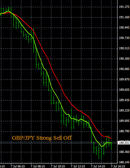 Today in forex trading the JPY was strong on all pairs, this drove the EUR/JPY and GBP/JPY much lower.