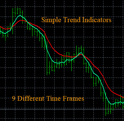 These trend indicators are for Metatrader or most other forex charting systems for 9 different time frames. We also have a set of videos that will teach you how to set audible price alerts and Metatrader profiles for individual currency analysis.