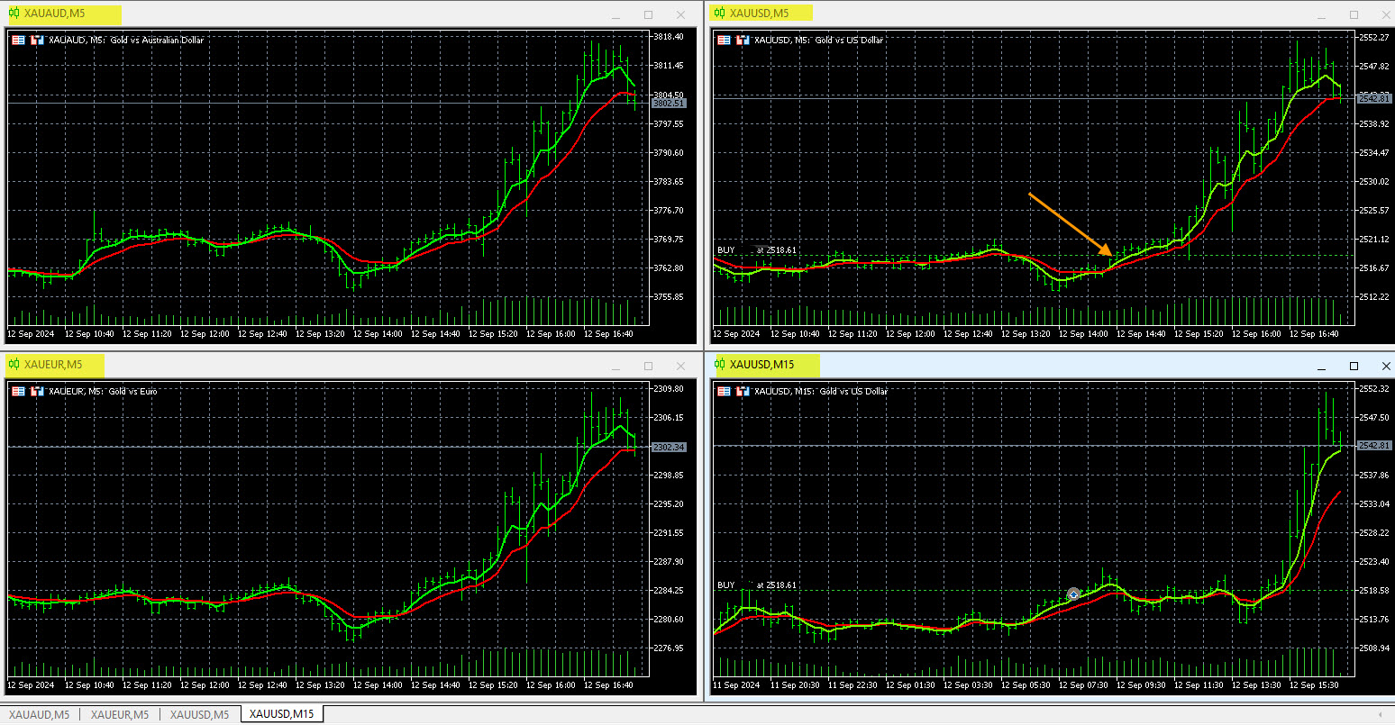 Today in forex trading the currency market was quiet. The big mover today was gold as it hit hew all-time highs across all currencies. All larger time frames are pointing up on gold, so if you scale out lots we suggest keeping part of the position open.