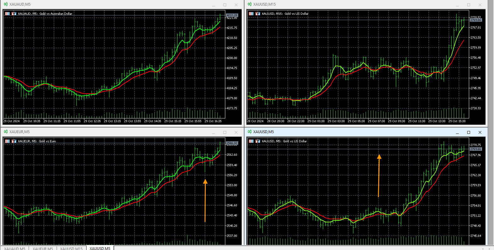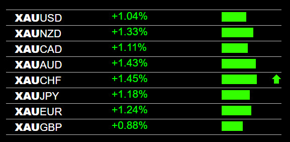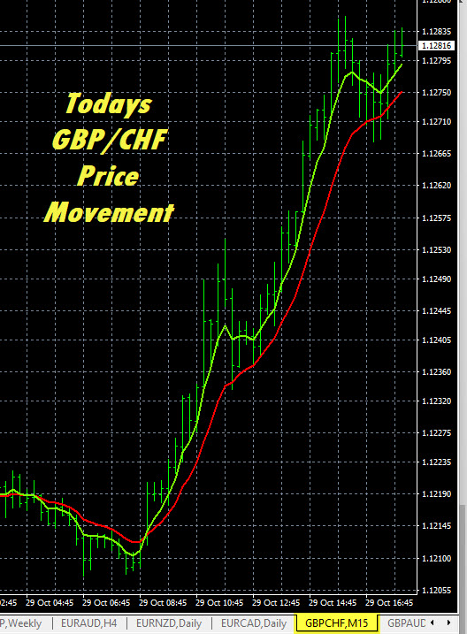 Today in forex trading the GBP was strong. The GBP/JPY moved higher in the strong uptrend, we see much more upside. The GBP/CHF moved higher. Movement was good on this pair, but it is inside of a cluster and is not trending, so we would exit. Gold was strong across the board and is now broken into new highs in the long-term uptrend.