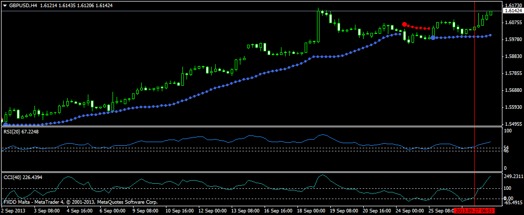 2. The reverse of RSI (20 period, typical price) (the RSI is when it reverses and cross above/below 50 for exiting a sell/buy respectively) please not that it does not use the 54/46 rule for exit, this is very important.