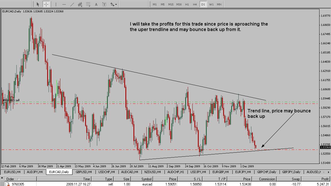 Regarding your trade on EURCAD, do you take the trade on the lower Trend line when your trade on the upper trend line hit your profit target on the lower trend line? or you do not take the trade coz you said before trade according to the main trend. I am still confuse with different market scenario and I lose 90% of my account due to fake entryluckoly its just demo account. I have lots to learn and practice a lot