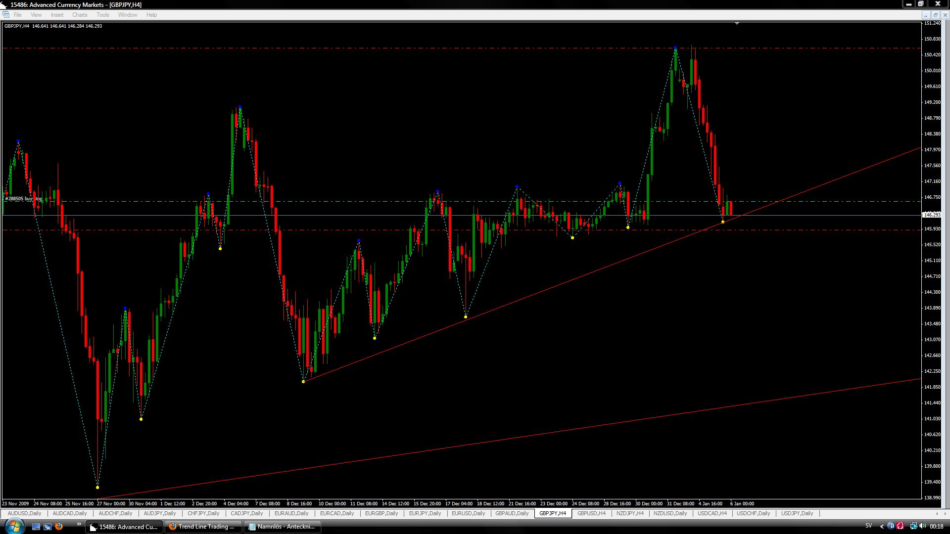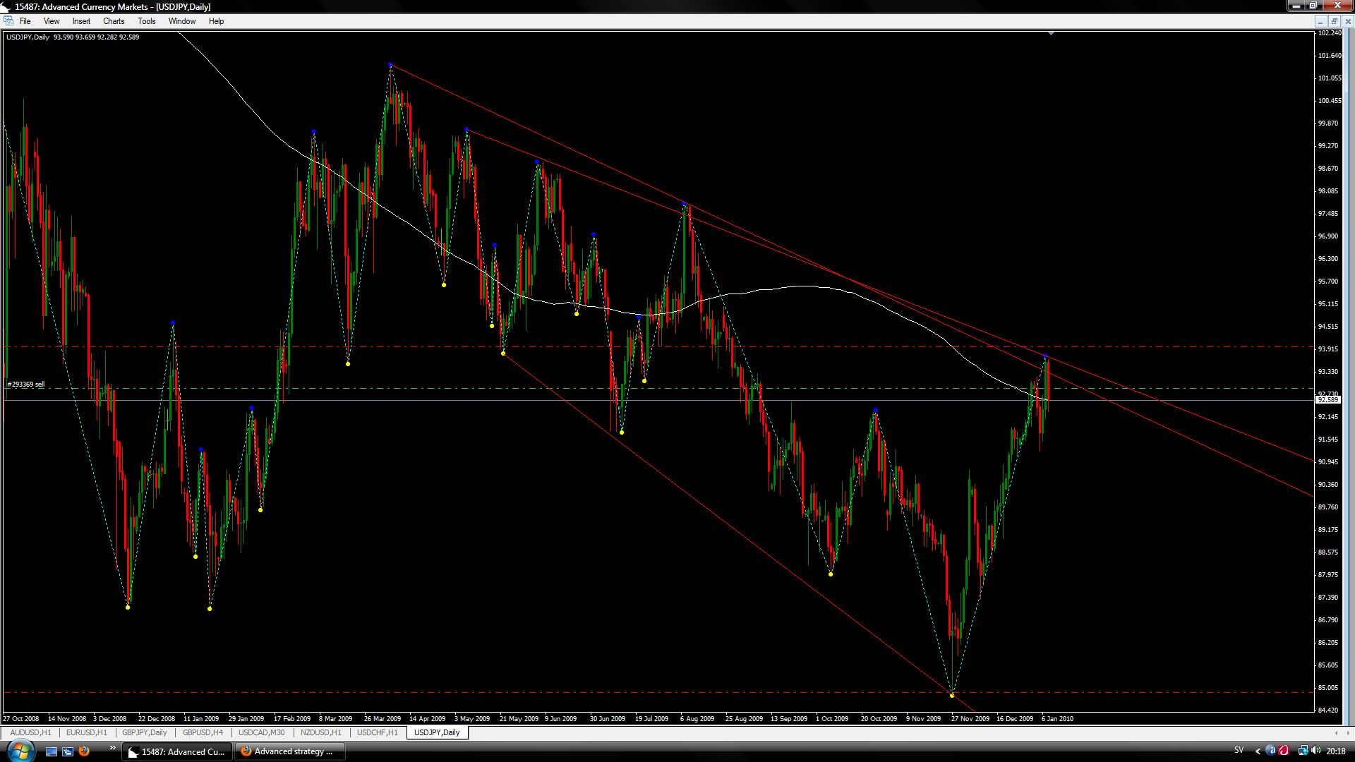 The usdjpy order on Daily chart as chintoposted, I did make a too early entry on that one resulting a break upwards of the trendline. While looking at it I made a mistake. I did draw the trendline to fit my own need so it would "look" like a entry. But in fact it wasn't. Its important to draw them according to the market and by our own feelings to suit ourselves.