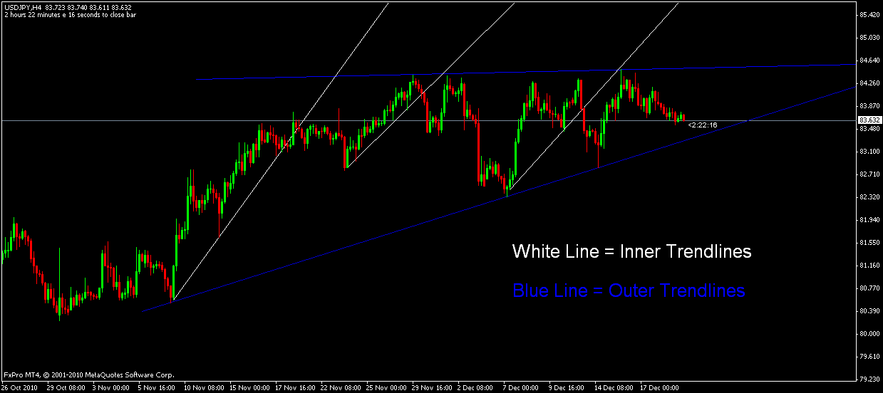 To draw a valid trendline, just connect the outer trendlines instead of the inner trendlines. The price is more likely to bounce off the outer trendlines.