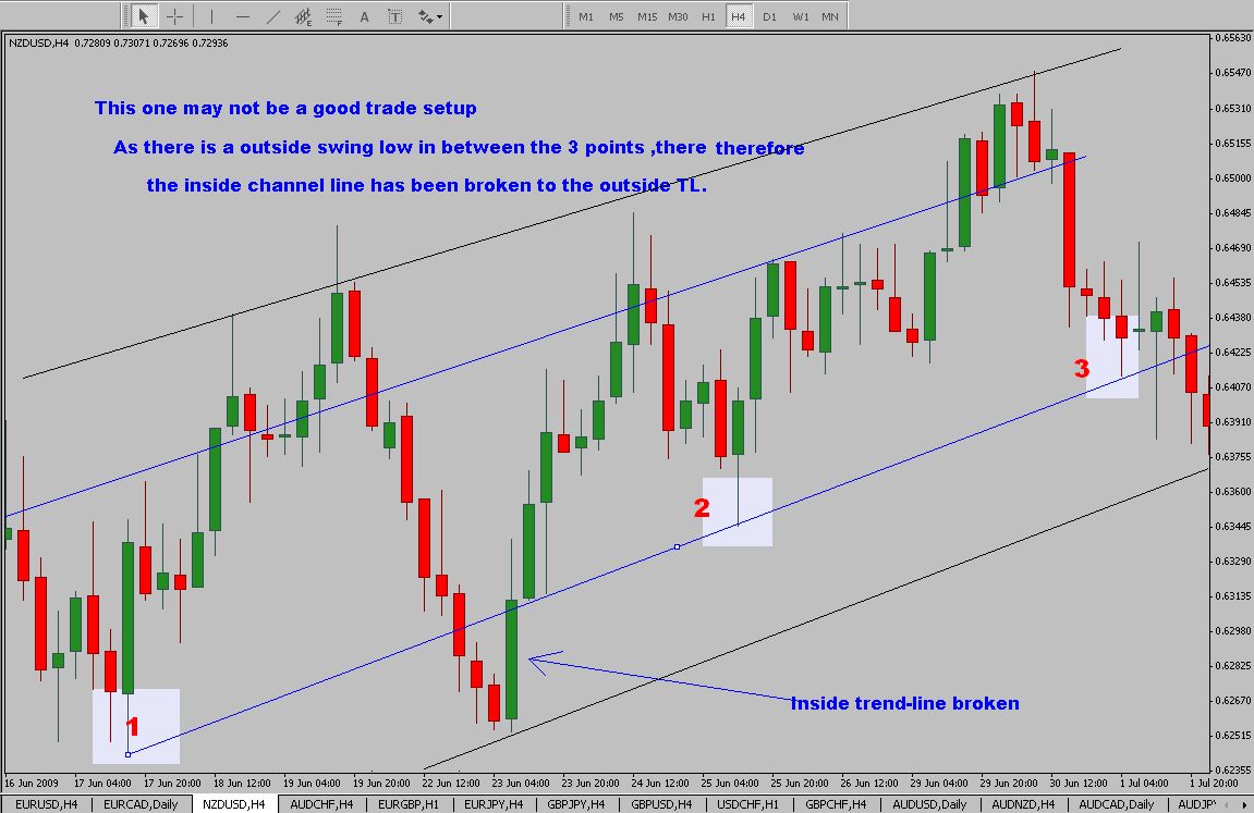 low/high with a outside swing in between , a trade setup like that may not work as the inside TL has been broken by the outside swing low/high.