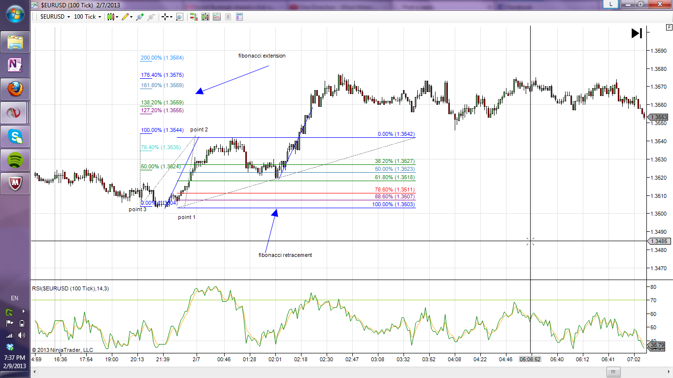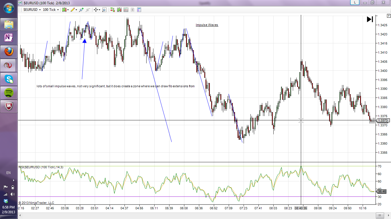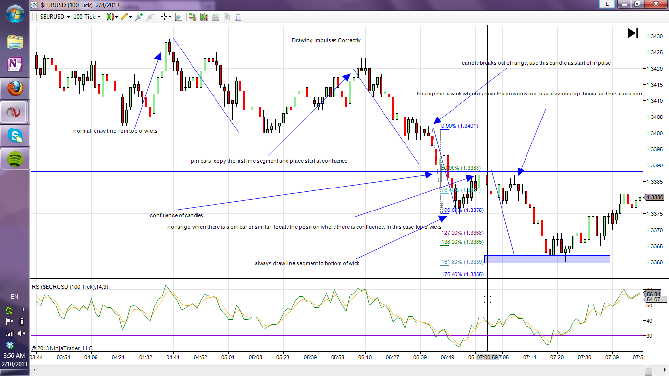 A Break from Fibonacci: How to access tick charts and a platform that allows one to draw line segmentsYou cannot use metatrader for this, you cannot draw equal length impulse waves. You need to use free ninjatrader, and then place trades on metatrader or whatever using the analysis you did in ninjatrader. Dont worry, data feeds are basically the same, and you can get a free live data feed from MBTrading!