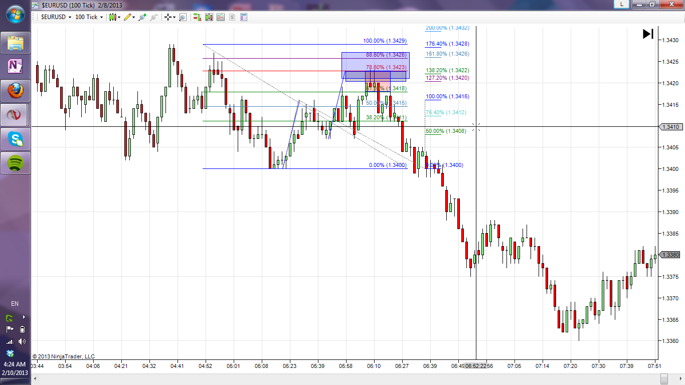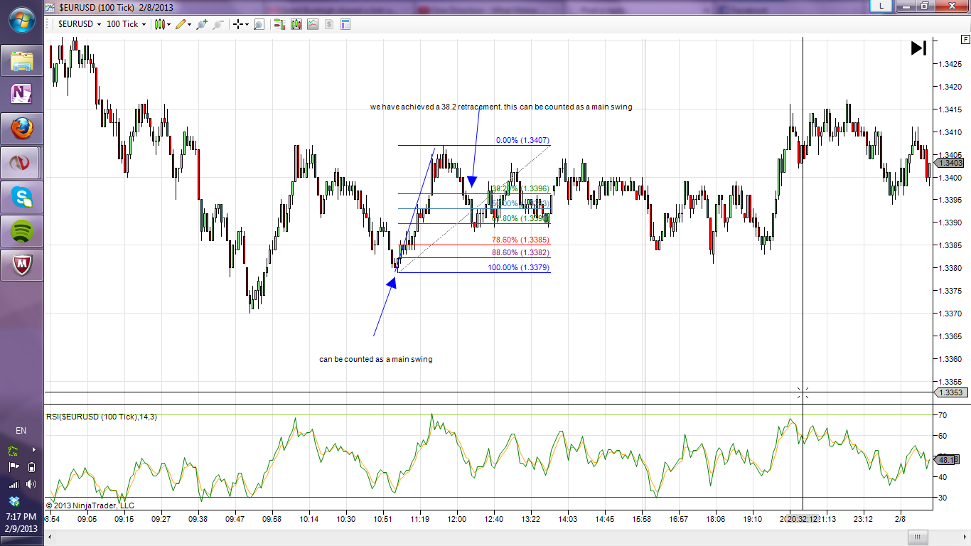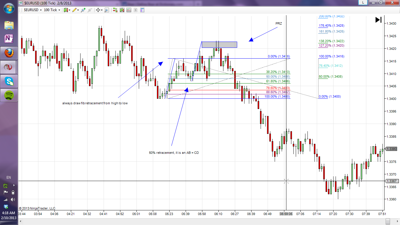 A Break from Fibonacci: How to access tick charts and a platform that allows one to draw line segmentsYou cannot use metatrader for this, you cannot draw equal length impulse waves. You need to use free ninjatrader, and then place trades on metatrader or whatever using the analysis you did in ninjatrader. Dont worry, data feeds are basically the same, and you can get a free live data feed from MBTrading!