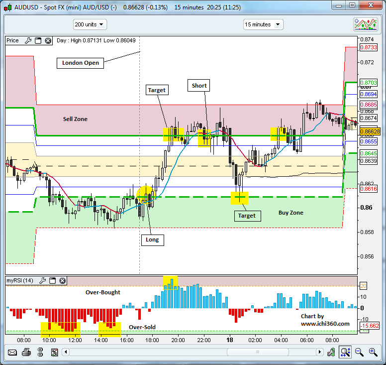 Camarilla helps you to determine the Upper and Lower channels for a day, you still need to ensure that you enter into trade at the best time. A combination of Camarilla, RSI and Moving Averages is all he uses … Timing and Patience are also quite important as you’ll have to wait for the price to not only reach to the Buy and Sell zones but also wait for the proper signal of price start trending …