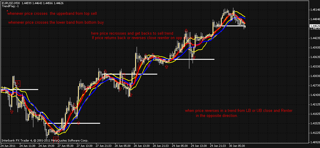 price entry to untill channel high or low is crossed.TP can also be on fibonacci lines or combined with channel re-entry or re-crossing.