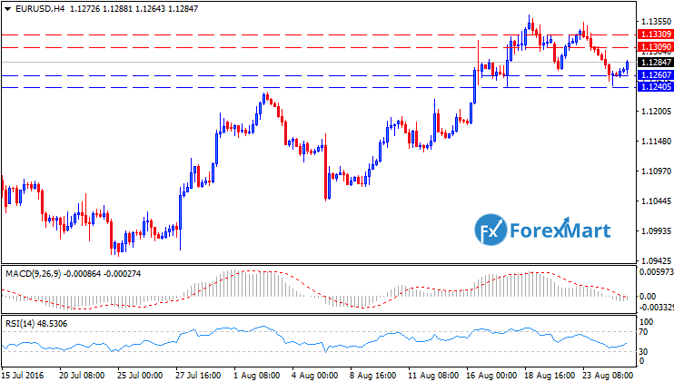 The currency pair EUR/USD remained squeezed early yesterday and decreased during the closing of the trading session at 1.1275 or -0.27% whereas investors are focused more about the symposium participants held in the place of Jackson Hole, Wyoming along with the upcoming speech from the Chair of the Fed, Janet Yellen with regards on the possibility of a hawkish movements for the percentage rates on USD.