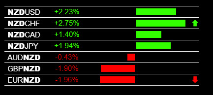 Today in the main session forex trading the NZD was strong on all pairs in this currency group. This drove strong price movements during the main trading session. Images of the live forex trading signals from The Forex Heatmap® and price chart movement for these pairs is shown below. Today in the main session the NZD was strong, producing some good short term movement. Pairs like the NZD/USD and NZD/CHF moved up and had good movement. However due to the amount of overall market volatility and lack of trend on these pairs, we would treat any NZD strength trades as short term only and exit any short term buys. The overall equity and commodity markets remain volatile. These live currency trading signals and trend based trading plans for 28 pairs can be found on our website at Forexearlywarning.com.