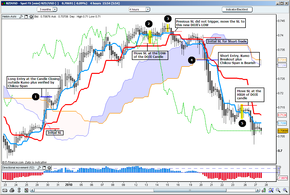 I just thought to post a detailed step by step guide on how to trade with this wonderful setup which is actually a combination of Ichimoku Kumo Breakouts and Heikin Ashi’s Doji Candle for the Exit strategy.