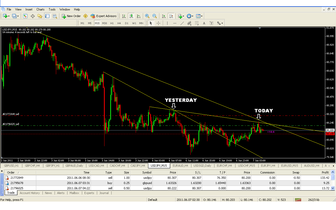 usdjpy trades, yesterday (monday) and today.
