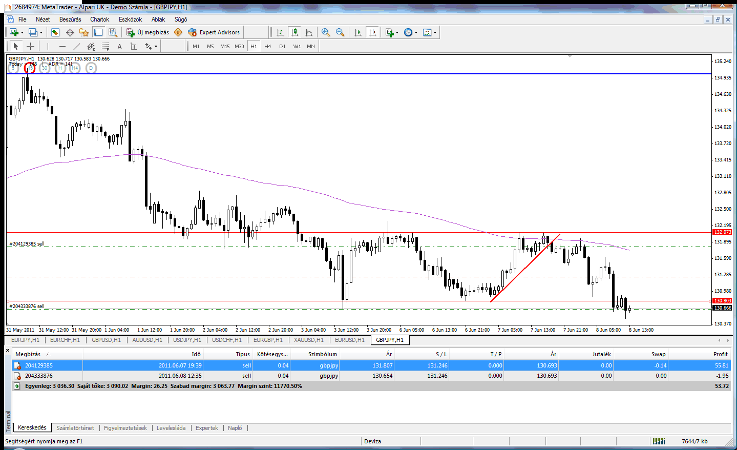 but earlier I had a 5th position building Eur/Gbp.