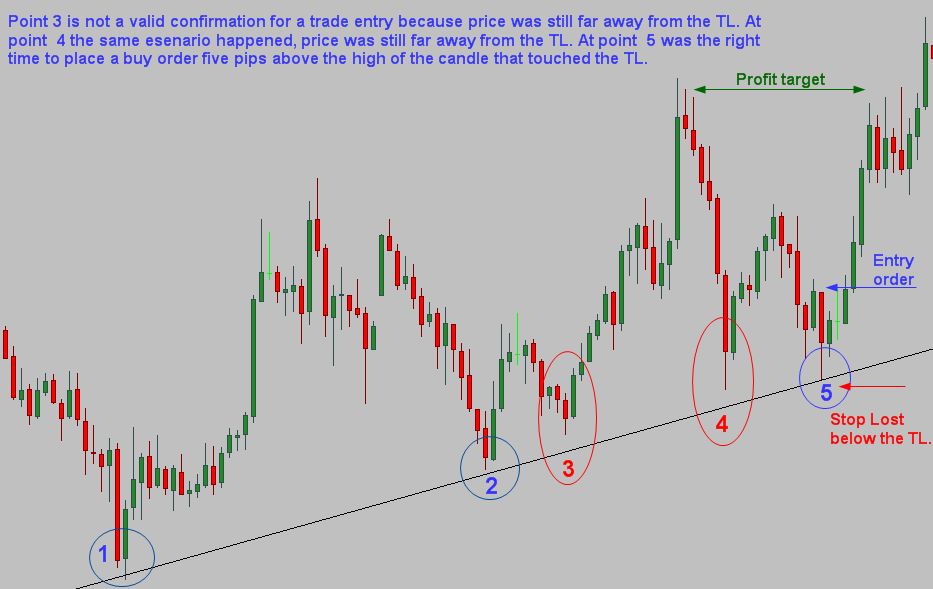 Not , the safest strategy is not to wait for price to close below the TL on the EUR/USD setup exemple.