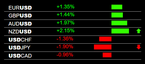 Today after the CPI news the USD was weak across the board, causing strong price movement. All USD pairs participated. USD is likely trending now on most or all pairs. This complete trading system is available at:
