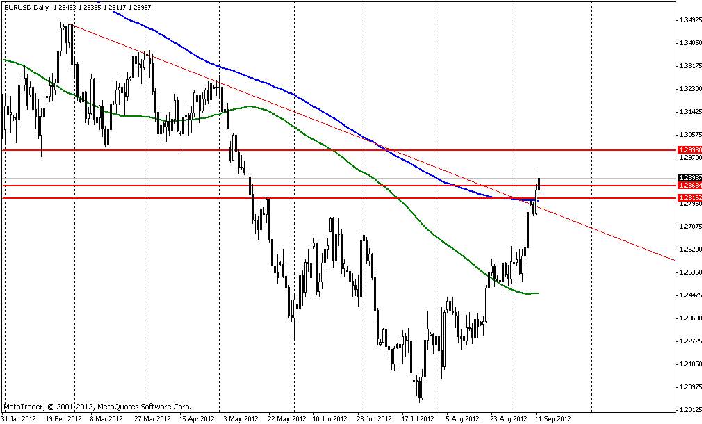 The eur-usd break yesterday a very strong resistance level at 1.2816 and close above daily 200 sma . The next important support level will be 1.3000.