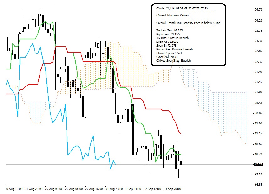 The basic idea is to not only display the valuable Ichimoku Values on top-left hand side of screen (such as Tenkan and Kijun values etc) but also to show an Alert box when Buy / Sell Signals are generated. Here is the list of features: